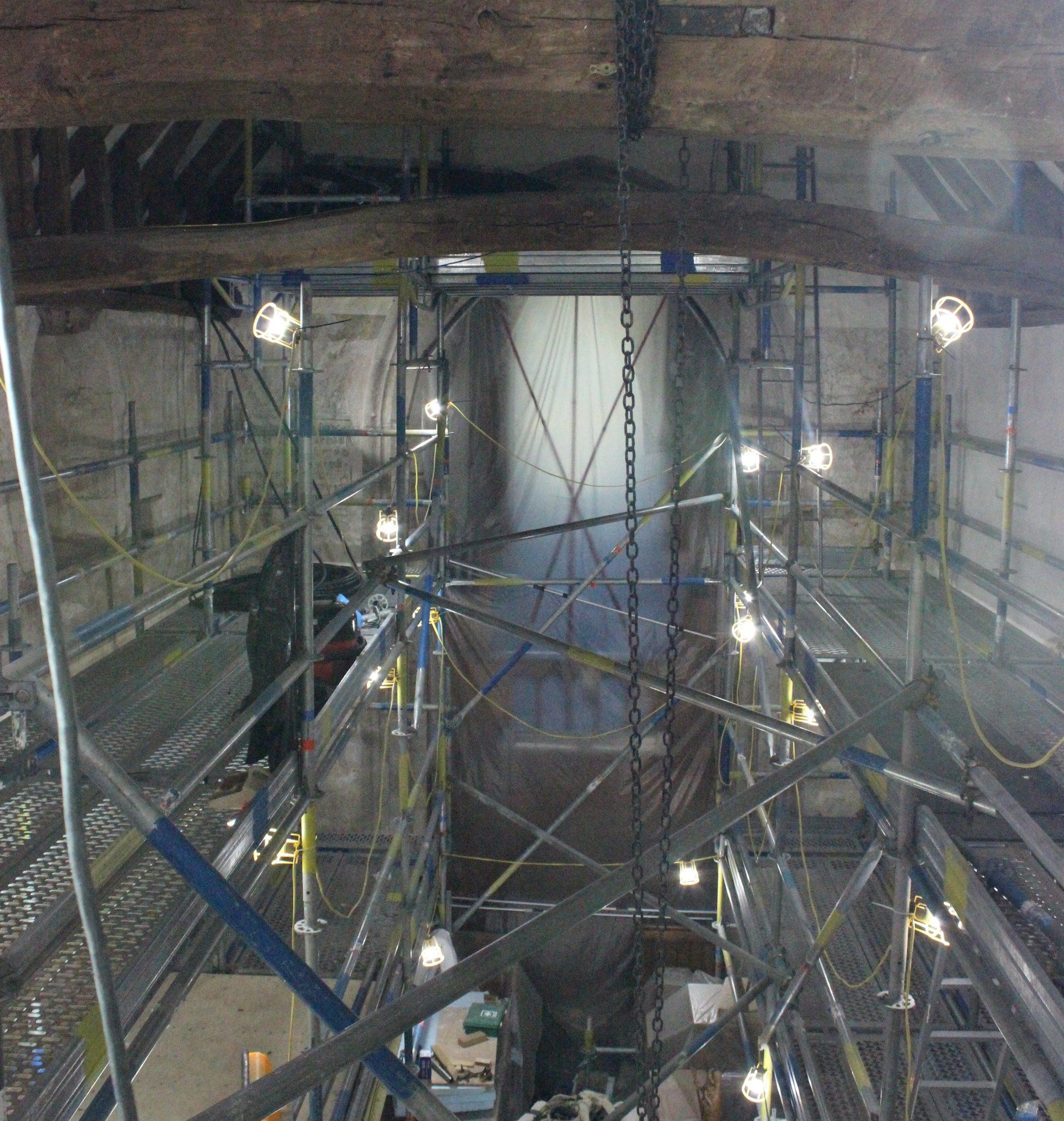 Aside from the north wall of the Nave, which had been conserved on at least three occasions in the ensuing decades, the remainder of the church had been left largely untouched for 80 years, and the paintings, other than those of St Christopher and St Catherine, had become progressively obscured. This deterioration was compounded by the fact that in the 1930s, the prevailing approach to conservation was to cover the paintings with a layer of wax: alarmingly, this was achieved by heating the surface of the painting with a blow-torch and then brushing over with wax, which would immediately turn translucent. What was not appreciated at the time was that the wax prevented the ancient plaster from breathing naturally, and over time absorbed dirt and grime, darkening the paintings to the point that they were far less clear.